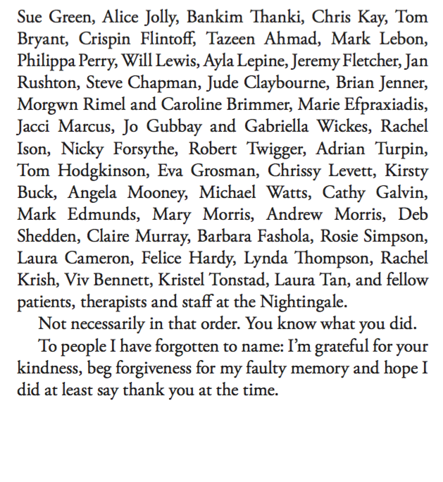 Today (publication day) seems like a good opportunity to say thank you to my agent, Jaime Marshall, my publishers Aurea Carpenter and Rebecca Nicolson of Shortbooks, many others listed in the book’s Acknowledgements pages – and still more who are not listed in it.